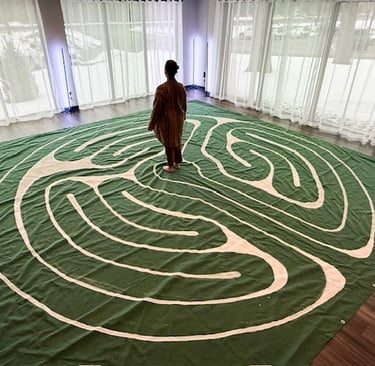 The Labyrinth Circle ~A guided, intentional labyrinth walk -- one at a time, at your own sacred pace with quiet space for deep inner listening and grounded meditation. You are invited to stay in this sacred space and capture the insights, emotions, and ideas that rise during your walk through creative expression ~journaling, painting or mandala work.